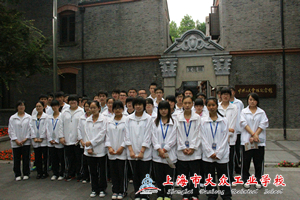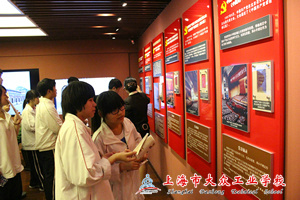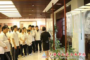 刚下车,学员们就被那馆外的碧草、青竹吸引,中共“二大”会址纪念馆位于上海市老成都北路,虽身处闹市区,但纪念馆却依然给同学们营造出一股安静的气氛,显得格外庄重。往里瞧,一幢石库门老房子,上海石库门是革命的摇篮,是红色的起点,是世人打开了它的历史之门。在中共“二大”会址的门额上,清晰地雕刻着“腾蛟起凤”的字样,显得特别庄严肃穆。这个老弄堂里,记载着中国革命的光辉历史,这里的一砖一瓦仍然保留着当年的气息,每一根柱子、每一扇门窗、每一件旧衣、每一本书册,都在讲述当年的故事。
