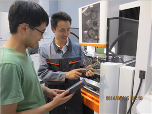 此次企业项目培训,阿奇夏米尔机电有限公司领导给与了高度重视,给本次培训精心安排了朱平,周迪等多名工程师全程负责培训,并安排好办公室等其他服务工作。为期一周的培训时间里,周迪工程师详细的讲解MIKRON五轴加工中心的操作及编程,并让学员练习操作,我校参训老师的学习积极性很高,在熟练掌握操作的基础上,不时的向周工提出相关问题以便更透彻的掌握。同时培训的还有几位其他企业的员工,大家一起交流探讨实际操作中的一些工艺问题,整个培训的学习氛围非常好。甚至,当不是自己操作机床的空闲时间里,大家还主动的去放电区域看电火花及慢走丝加工,针对自己前期遇到的一些工艺问题与工程师们探讨,获取宝贵的经验。企业的工程师们也很热心,他们耐心详细的给我们讲解。
