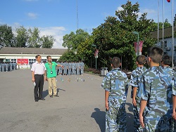 8月30日上午9点,文科教学部、汽修教学部14级新生学生及带队老师如期抵达浏河营地。上午10点整,各个连队在教官的带领下,以抖擞的精神面貌、整齐划一的列队在广场依次排开,军训教育入营仪式正式开始。随后,营地主任致欢迎词,并宣布总教官,和各连连长名单。仪式上,校团委书记练子飞老师发表重要讲话,他希望大众学子以此次军训为契机,磨练自己、提高自己,培养坚忍不拔、拼搏进取的精神,为今后的人生道路奠定坚实的基础。并提出虚心学习、遵章守纪、吃苦耐劳等三点要求和希望。