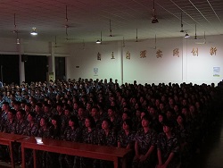 [题记]又是一年军训时,校园里再次响起嘹亮的口号声,飘荡着鲜艳的迷彩绿,整个校园为之活跃起来。让我们一起共同记录2014级新生进入大众工业学校的第一课。 殷殷关切助成长 军训过程中,学校领导始终注视着受训的新生。8月31日陆浩勤副校长来到浏河营地,他不辞辛劳,走连访排,亲力亲为,指导和解决学生们遇到的问题,让同学们刚刚走进校门就能够感受到家庭般的关怀。在晚上的营地大会上,陆浩勤副校长作重要讲话,他首先代表学校向承训官兵表示欢迎与问候。在讲话中他说道,大众工业学校是一所久负盛名的中职校,希望新入学的同学们以学校为荣,同时通过自己的努力继续创造大众的辉煌。随后,陆浩勤副校长向全体参训学生提出了三点要求。第一、培养吃苦耐劳精神,养成良好的行为习惯。第二、加强团队协作、互帮互助、共同进步。第三、积极争优创先,争创军训先进集体、争做军训积极分子。他强调,军训是中职学习生活的重要一课,也是我校“半军事化管理”的重要环节,陆浩勤副校长勉励大家秉承和发扬大众的优良传统,提升军训质量,巩固军训成果,积极构建我校“德育为先会做人,技能为本会做事”的良好局面。  军号鸣展军姿 总有一种精神让我们为之震撼,总有一种期待让我们为之兴奋,总有一种力量让我们不断追求自我的完善。抱着这份震撼、这份兴奋和这份不断追求自我的信心。随着嘹亮的军号,大众学子们开始了第二天艰苦的集训。枯燥的练军姿要求从头到脚,每个关节,每个部位的动作都必须相当规范,几分钟下来,同学们就会感到精神疲惫,四肢酸麻,只要一听到教官说休息两分钟,同学们几乎全体都瘫坐下来,这种少有的体验应该才是真正意义上的军训吧! 军训是辛苦的,但也不乏有令感动的时刻。每次休息时,教官会和我们一起高唱军歌,嘹亮的歌声响彻天空,也就在那时,大家对祖国有了更真切的感受,同学们的民族自豪感也因此油然而升。感动的情绪并不仅此而已,在同学们目光触及的地方,总能看到班主任老师,他们全程的陪同,老师们的眼里流露出的尽是对同学的关爱和鼓励,看到有同学因身体不好头晕迷糊时,老师总是第一个上前搀扶,细心询问病情,让同学们感到很温暖,似乎家人分明一直陪伴着,关注着同学们的一切。感动,就这样悄悄地在心中蔓延开来…… 浏河军训,不仅是对每一位大众新生身体上的考验,更是对精神上的一次洗礼,军训让同学们清楚地认识到,吃过的苦还太少,意志还有些薄弱,这一切都让大众学子们加紧训练,绝不松懈,坚持圆满完成任务! 训练忙精气神 活动第二天,阴天气温有所下降,但是同学们的热情不减,他们以高昂的“战斗激情”参加了军事内务、纪律技能训练。 全体新生整齐划一,听教官讲解队列、纪律、内务三大条令,教官生动诙谐的语言着实吸引了一大批大众学子,在妙趣横生的演说和紧张激烈的操作中,同学们掌握了要领,不仅锻炼了体能,还提升了内务技能,收获颇丰。 结束语:通过这两天的军训活动,新生们在教官的教导下从处事拖拉散漫,到行动干脆落;从目中无人,到彬彬有礼;从娇生惯养,到学会了关心别人、懂得感恩;从饭来张口、衣来伸手,到吧宿舍内务整理得干净整洁;每一天的点滴进步潜移默化地改变每一个人。