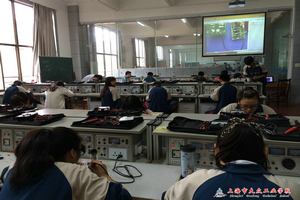 日前,华体会体育电气实训车间里出现了一群嘉定一中的学生。只见他们一会儿认真地听着老师们的讲解,一会儿又拿起电烙铁和元器件,认真仔细地进行着操作,嘴里还在念念叨叨地说着开心的话,“太好玩了,这种学习我乐意!”。