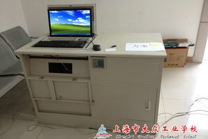 显示器安装于讲台桌面玻璃下,增加显示器钢制托板。