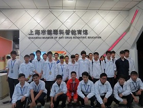 2014年10月23日,各教学部选派优秀学生代表组成14级禁毒教育学生宣传员29名同学,由学生处副主任朱海红老师亲自带队,来到上海市禁毒馆参观学习。禁毒馆位于一个闹中取静的地理位置,旁边便是地铁站不张扬的伫立在一个转角,柏油马路边几棵不知名的树作为陪伴,恰到好处的静谧。