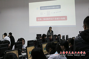 2014年12月1日星期一上午第三节,信息技术教学部教师周文绮上了一堂全校公开课,课题是Flash影片剪辑元件应用——圣诞贺卡制作。