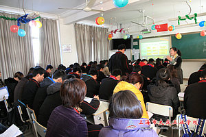 高屋建瓴式的教材处理,丰富多彩的多媒体、布局漂亮的板书、亲切和蔼的微笑、“共同的学习者”的先进理念、创新教学手段的尝试,都给大家留下了深刻印象。