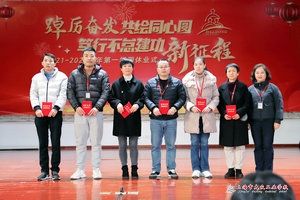 冯明感谢2021年里为学校发展、学生成长付出辛勤汗水的全体教职工。他讲到,在各级政府的关心指导下,在全体师生的辛勤耕耘下,本年度学校围绕“十四五”规划蓝图,以质量效率为主线、以传承创新为动力、以促进师生发展为核心,年内学校获得第46届世界技能大赛原型制作和工业机械项目中国集训基地、上海市花园单位等区级及以上集体奖项20项,年终考核结果为先进。正是全校上下齐心聚力、担当作为、突破创新、比学赶超,才能稳步推进教育教学各项工作,圆满达成学校年度工作目标。