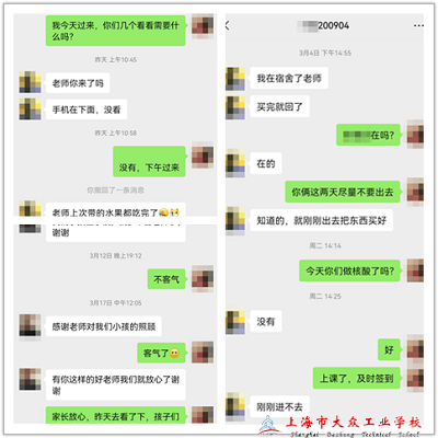 如此高强度的工作,除了一日三餐外,王顺几乎没有时间和家人交流, 对此,他的爱人,同为大众工业学校的现代制造系实训指导老师李聪,给予了充分的支持和理解,而她本人作为班主任,也时刻牵挂关心着班级每一位学子的学习与生活。在学校全面开启居家线上教学后,她每天都和学生们保持联系,利用班级微信群和同学们“云”互动,及时了解掌握同学们的思想动态。