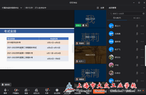 2022年5月21日下午1点30分,华体会体育通过钉钉平台组织召开学期结束阶段“云”教学工作例会,教务处、实训中心、科研室正副主任、各系部主任以及各教研组长共计二十七人参加会议,会议由教学副校长付磊主持,会议主要内容是就本学期线上教学工作进行阶段性总结,并就学期结束工作进行布置安排。