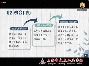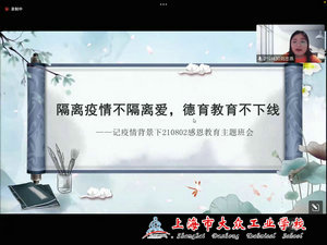 因疫情影响,原定于5月份开展的拜师结对班主任(教师)主题班会展示活动以线上说课的方式进行。来自五个系部的9位新班主任(教师)结合当前疫情防控背景,分别从中国力量,感恩教育,责任和担当,居家防疫和锻炼,心理健康等主题入手做了精心的准备,每人用短短10分钟左右的时间进行了主题班会说课。他们的导师也随即进行了相应的点评并提出了不少有针对性的建议。在本次线上主题班会说课展示中,许多老师充分运用数字化媒体,结合当下防疫中发生在学生周围的充满正能量的人和事,坚持立德树人的宗旨,将“抗疫”和“育人”有机结合,增强学生战胜疫情的信心。
