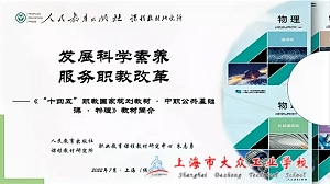 根据《国家职业教育改革实施方案》《关于推动现代职业教育高质量发展的意见》等文件精神,为贯彻落实立德树人根本任务,提升技术技能人才培养质量,进一步落实中等职业学校10门公共基础课程标准的有关要求,准确理解新课标、新教材下中职物理课程目标和内涵,规范各校专业人才培养方案中物理课程方案编制及课程教学管理,上海市教育委员会教学研究室开展了中职公共基础课程“双新”推进物理学科教师研修活动。7月18日至19日,35所学校105位报名教师云端相聚,参加了物理学科教师研修活动第一阶段线上培训会。