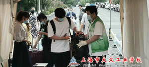 早上7点多,校领导和老师们已经在学校门口等待即将入校的同学们,校门口的帐篷中,微笑的老师们为每一个返校的同学们查验健康码,并检测体温。穿上绿马甲的同学们整装待发,为来校的同学们搬运行李及新生引导工作。