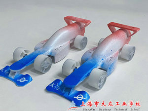 在赛车设计上设计师更是用心,采用更贴近2022年F1inSchools 赛规的赛车外观,将赛车在原有的基础上改良,使赛车更加具有特色。前翼上是队伍logo和名称,尾翼上是车队的外号“Crazy Team"一 事实也正如此,他们的赛车配色大胆,标新立异,属实是疯狂但又精彩。赛车侧箱上一侧写着Respect一R,意味着向那辆凯旋的赛车——R致敬。另一侧写着CT-M,m是太初车队赛车设计师张骄龙的外号——“M",CT意味着Crazy Team。因为太初车队是中国风车队,所以赛车的配色参考了古代的饰品一凤冠,与古代著名建筑——故宫,以及我国传统手工艺术品的配色。太初车队旨在让古代传统文化和现代文化相结合,打造多元化车队,让世界都知道这一支来自中国的车队。