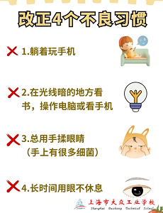 首先改掉四个不良习惯:1.躺着玩手机;2.在光线暗的地方看书,操作电脑或玩手机;3.随意用手揉眼睛;4.长时间用眼不休息。