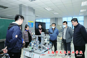 参观团主要参观了学校规模宏大的实训中心,在原型制作、工业机械世界技能大赛中国集训基地,智能制造中心驻足停留,嘉定工匠王文强老师正在实训中心指导学生备战上海市“星光计划”第十届职业院校技能大赛,王老师向解院长等人介绍了赛事概况、学员的备赛进度等。工业机器人实训中心硬件升级,优化了实训场地,并购置了大批供教育教学使用的高配置设备。机电一体化实训中心内,来自兄弟院校的师生正在与学校备赛师生切磋交流,娴熟的操作技能引得参观团连连称赞。