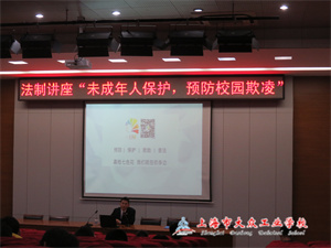 未成年人保护工作是一项系统性的工作,需要社会、学校、家庭各方共同努力才能取得好的成效。2023年3月24日下午1:00,大众工业学校在四教阶梯教室组织了一场以“未成年人保护预防校园欺凌”为主题的讲座。本次讲座邀请到嘉定区人民检察院检察官王顺为学生做法律知识普及。