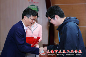 活动中,领导及嘉宾依次为获得2022-2023学年“上海市先进集体”“上海市优秀学生干部”“嘉定区优秀学生干部”“嘉定区三好学生”荣誉称号的个人和集体进行颁奖,并合影留念。获奖学生代表200502班刘梦琪发言,鼓励同学们要勇踏时代浪潮,走好新时代的长征路。