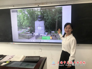 2023年5月19日第二节课,李启泓老师在我校5-202上了一堂课题为《马克思墓前的讲话》的校第十一届教师教学能力大赛参赛课。