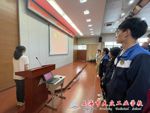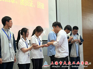 校团委组织委员向雨华宣读了新团员入团名单,新团员青春的脸上洋溢出自豪与光荣。热烈祝贺今天59名品学兼优的大众学子正式迈入中国共青团的行列,成为中国共产党的后备军。各系部负责老师分别为新团员佩戴团徽,新团员们抬头挺胸,正视前方,鲜艳的团徽闪耀着熠熠光辉。胸带团徽,面相团旗,校团委副书记丁佳权带领新团员面向团旗,庄严誓词,嘹亮而坚定的宣誓声久久回荡。铿锵有力的誓言,道出了他们心中的豪情。