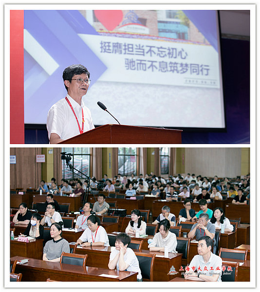 冯明从“党建引领集聚合力,精心构建良好教育生态”“多措并举‘三全育人’,着力增强立德树人实效”“产教融合深化内涵,大力培育高素质技能人才”“引育并重激发动能,积极厚植优秀人才优势”“积厚成势服务大局,全力提升综合治理水平”“开拓创新服务社会,倾情奔赴贡献‘大众’力量”六个方面全面梳理与总结一学期来的工作与战绩,并对暑期工作与生活提出三点要求:一是要分工协作,全力完成暑期工作任务;二是家校协同,守护师生健康安全;三是严守师德,树立教师良好形象。