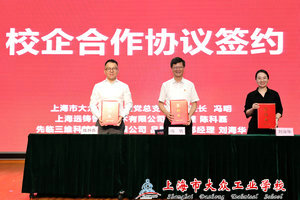 为提高各方的服务质量,更好地满足残疾人的需求,启动会上,嘉定区残联党支部与华体会体育党总支签署了共建协议。学校与上海远铸智能技术有限公司、先临三维科技股份有限公司签署校企合作协议,为后期工作奠定基础。