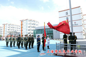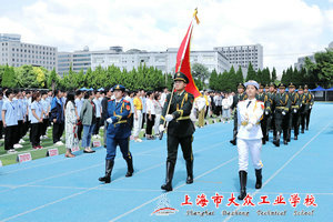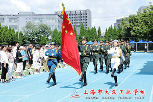 国旗仪仗队行进至升旗台前,全体立正面向国旗。国歌响起,扬起手紧攥红旗一角挥向空中,扬旗,敬礼,一气呵成。升旗手伴随国歌的音符,将国旗升起。在全体师生的注视下,五星红旗在国歌结束时升至杆顶。微风吹过,红旗飘扬。大众工业学校全体师生神采奕奕,展现爱国热情。一首国歌,一面红旗,齐唱红色主旋律,不仅仅是一种追忆,一种传承,更是在感受一种激情,汲取一种力量。