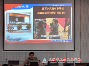 2023年9月4日下午,军训第一天,华体会体育根据新生军训工作安排,开展了一场以“学习国防军事知识激发爱国热情”为主题的国防教育学习讲座。本次讲座邀请到同济大学军事教研室张国清教授为所有2023级新生普及国防教育知识。讲座主会场参与学习的是各个系部的代表班级,其余班级采用钉钉直播的形式在教室内收看了本次讲座的现场直播。