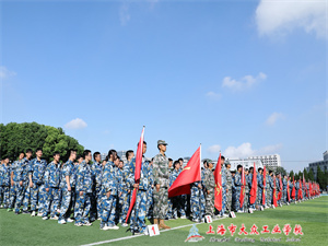9月8日上午8点整,上海市大众工业学校2023级新生集结完毕,迎着朝阳,以饱满的精神和昂扬的士气接受军训会操检阅。出席本次检阅式的是嘉定区人民武装部副部长段越、嘉定区教育局副调研员何军、大众工业学校党总支书记、校长冯明、浏河营地副主任龚京、大众工业学校副校长沈菊芳等领导。本次军训会操展示主要分为六部分:军训成果展示、军训积极分子表彰和优秀教官表彰、优秀连队表彰、军训总结、学生代表发言、归还团旗等环节。