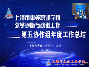 第五协作组组长,我校党总支书记、校长冯明首先对莅临现场的专家领导表示感谢,然后从三方面对2023年协作组年度工作进行了总结:一是积极参加诊改复核,大力推动教学诊改。协作组今年有三所学校申报了上海市中职校教学诊改抽样复核,均被认定为复核有效;二是深入开展培训研讨,提高诊改工作水平。今年共召开四次培训研讨活动,邀请了多个专家辅导诊改工作,为开展诊改工作指明了方向。三是广泛征集诊改案例,总结诊改工作经验。9月至10月期间开展了诊改案例征集活动,经过案例撰写辅导、案例初稿提交、专家指导、案例修改等一系列环节之后,形成7篇高质量的诊改案例。冯明强调:诊改是一项帮助学校保质量促提升、变管为治的创新性基础性工作。首先,要树立现代质量文化意识,把提高教学质量作为工作的核心任务。其次,要重视制度、机制建设及运行,建立和完善内部质量保证体系。同时,还要以人才培养状态数据管理系统为支撑,为教学诊改提供科学依据。最后,要以提高人才培养工作的满意度为目标,不断优化教学管理,保证教育质量。