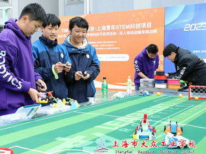 格斗机器人带来的是机器人足球赛,同学们手握操控器,比的是操控,体验的是高速运动、灵活的机器人的魅力!
