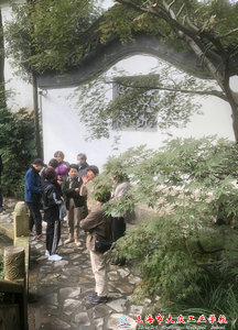 活动的安排是上午曲水园、下午蟠龙天地。由于隔夜一场淅淅沥沥秋雨的洗刷,清晨带有寒意,空气中还飘忽着细密的雨丝。大巴按时出发,天公作美,此刻雨已停。比邻而坐的老师们,一路上欢声笑语,展开了各种话题,不知不觉中已经到了曲水园,这座古典园林距今已有230多年历史,是上海市五大古典园林之一,其他是豫园、南翔古漪园、嘉定秋霞圃、松江醉白池。当大家倘佯在园内一石一水,一亭一阁的景色尽皆成趣,赏心悦目。