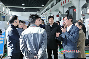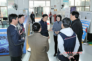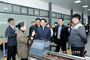 校园内,冯明带领观摩团驻足学校原型制作和工业机械两个世赛集训基地、汽车智造虚拟仿真实训中心、数控实训中心、学校荣誉墙等场所,现场讲解学校近年来矢志打造技术技能人才培养的“摇篮”所开展的工作及取得的成绩。其中,我校优秀毕业生现任学校教师、多项大赛获奖选手、全国技术能手王文强、史济隆、张容志的技能成才经历深受观摩团关注。
