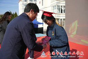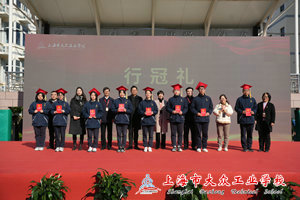 “拨穗”的象征意义是一种祝福,学有所成,可以展翅高飞!学校领导及嘉定区关工委主任徐宏为学生代表拨穗,并颁发《中华人民共和国宪法》。