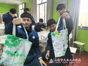 扎染是也是我们中国传统非遗文化之一,汽车工程系的同学平时接触更多的是汽车文化,今天能够近距离接触扎染艺术,拓宽了认知,接触到别有风味的艺术形式。在传承活动中,学生们通过一些简单的辅助工具,通过在帆布包上缠绕、折叠、捆扎等不同手法,创造出独一无二的纹路,零距离体验非遗魅力,制作出一件件别开生面的作品。
