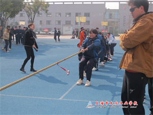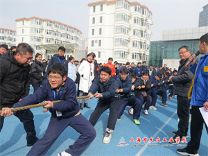 拔河绳上的红色标记在两队之间来回移动,各队队员使出九牛二虎之力,想为班级争得荣誉。你看,体育老师出身的吴卫斌副主任弓步一扎,指挥自己系部的一支比赛队伍,稳住阵脚,齐心协力,将胜利的天平拉向了自己这边;赛场上冯晓军、王丽霞等老师在自己班级比赛完之后留在赛场,为自己系部的队伍继续加油助威;大家在助威声、欢乐声中驱散了寒意,在空旷的大操场上留下热烈的瞬间。