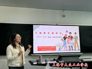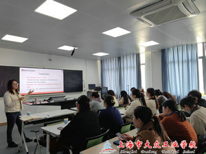 3月15日下午,杨浦区教育学院科研员奚莉芳老师在学校4号楼101智慧教室给我校青年教师进行了专题科研培训。