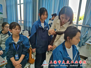在“面部护理与修饰”主题,她详细解读了面部特征、肤色、五官比例等对个人形象塑造的关键作用,并现场演示了基础化妆技巧,如底妆的选择与涂抹、眉形的勾勒、眼妆的层次感营造以及腮红与修容的巧妙运用。李老师强调,化妆不仅是对外貌的修饰,更是对自我形象的尊重和专业态度的体现。“实战演练”环节将学习推向高潮。李老师示范并指导学生进行盘发、修眉以及唇釉选择的实际操作。在盘发环节,李老师展示了多种适合不同场合的发型设计,手把手教授学生如何利用简单工具塑造整洁、优雅的发型;修眉部分,她强调了眉毛对于面部轮廓的重要性,细致讲解了眉形设计原则及修眉步骤,帮助学生找到适合自己脸型的完美眉形;在唇釉选择上,李老师解析了不同色系、质地的唇釉对妆容风格的塑造效果,引导学生根据自身肤色与妆容需求挑选合适的唇釉。