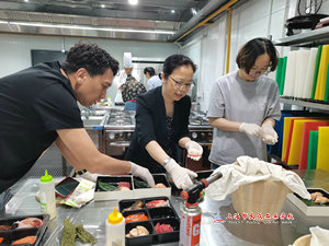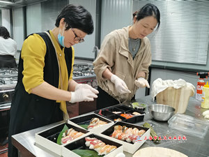 根据校工会的安排,5月31日,第一、八工会教职工齐聚烹饪实训中心开展寿司DIY活动,在烹饪专业教师王峰的指导下,学习海鲜寿司制作。