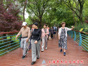 下午大家来到位于宝山区海滨街道东部的吴淞炮台湾湿地公园,公园以自然、生态为设计理念,保留了长江滩涂地的原生态风貌。园内亭台中西结合、栈道林木相互错落,江水清澈、环境优美,又突出鲜明的国防科技特色。