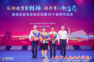 作为40年教龄教师代表,奚立川老师于昨日参加了嘉定区教育系统庆祝第40个教师节主题活动,上海市教委副主任刘力为其颁发了“满四十年教龄教师”荣誉证书。40年,是时间的长河,更是智慧的积累。在微访谈时,他说:“四十年来,面对不同的学生我一直在改变我的教育教学方式,但不变的是,坚持扎扎实实搞教学、搞专业。”是的,四十年风雨兼程,四十年桃李满天下,岁月或许在他的容颜上留下了痕迹,但那份对教育的热爱与执着却从未改变。由于王文强老师赴京接受表彰,现场通过视频VCR与会。