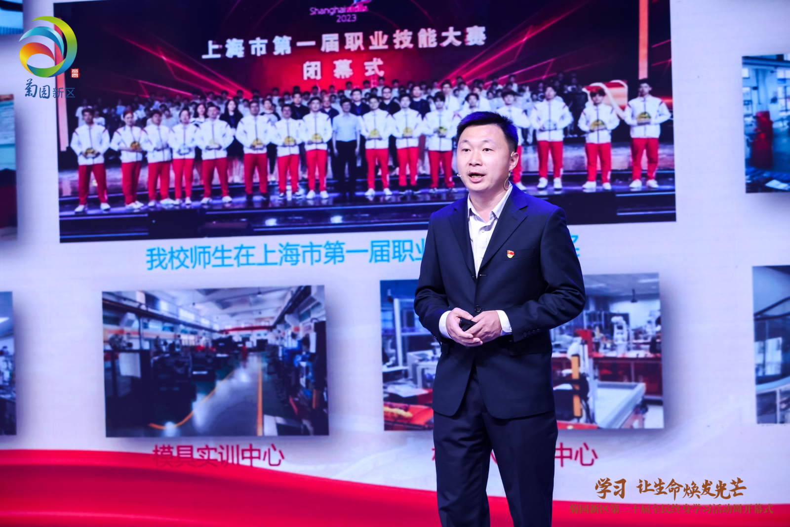 11月1日,在菊园新区第二十届全民终身学习周活动中,我校实训中心教师王文强作为“全国百姓学习之星”分享了“匠心筑梦,学习成就未来”的主题演讲。王老师从个人成长经历和学习经历分享了自己的经验,从一名上海市技术能手成长为全国技术能手,到全国优秀教师,享受国务院特殊津贴,他以其卓越的教学成就和对终身学习的执着追求为题材,讲述着他自己的故事,并激励着每一位听众。