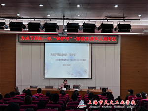 为给家长提供更多支持,学校还邀请到学校的法治副校长、嘉定区检察院检察官龚韵竹为参会家长带来题为“为孩子撑起一把保护伞”的未成年人保护法专题讲座。学校通过钉钉直播和现场聆听相结合的方式让所有与会家长都参与到讲座中。龚韵竹在家长会上就未成年人保护法整体情况,诸如学校保护、家庭保护、社会保护、司法保护、政府保护、网络保护等情况做了介绍。在讲座中,龚韵竹就未成年保护法中的一些条例做了解读,让家长对未成年保护法有更深刻的认识,还列举了一些具体案例,形象生动地让大家对未成年人保护有鲜活的参考示例。