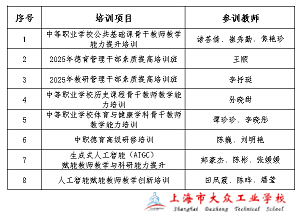 为深入贯彻落实党的二十大精神,建设高素质专业化教师队伍。近期,我校共有16位教师积极报名参加2025年上海市中等职业学校骨干教师市级培训。此次培训由上海市教育委员会职业教育处主办,旨在进一步提升教师的职教理论素养、教师育德能力、教学能力与专业实践能力,建设高素质中职教师队伍,推进本市中等职业教育高质量发展。