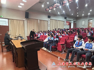 参观结束后,全体师生有序前往4号楼阶梯教室,开启活动的第二环节。朱强早已等候在此,他通过精心制作的PPT,深入浅出地为学生们解读2025年上海市高中阶段招生政策,从招生计划的分配、报考条件的要求,到不同批次志愿填报的注意事项,每一个要点都清晰明了。随后,朱强着重介绍了大众工业学校的招生情况,从学校的优势专业、师资力量,到学生毕业后的就业前景与升学渠道,全方位展示了学校的实力与特色。他言辞恳切地鼓励广大立志成才、技能报国的学生积极报考大众工业学校:“这里是你们梦想启航的地方,只要你们努力学习专业技能,未来定能成为新时代建设祖国的大国工匠中的一员,在各个领域发光发热!”