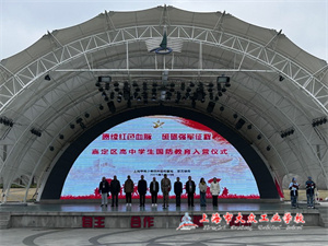 入营仪式上,同学们身着整齐的迷彩服,精神抖擞地列队集合。他们目光坚定,怀着崇敬与自豪的心情,高唱国歌,庄严宣誓,表达了他们克服困难、圆满完成训练任务的坚定决心。在接下来的日子里,同学们接受了匍匐前进、射击训练等军事化训练,并参观了恢宏的兵器博物馆,还参与了平衡木、逃生墙挑战等丰富多彩的拓展活动,学子们不仅形象上朝气蓬勃,阳光可爱,军姿也益发挺拔,随着活动的深入,同学们的斗志更加昂扬,意志更为坚定,也更深切地体会到团队凝聚力的重要意义。而大众师生在文艺汇演上表演的《中国功夫》也非常应景,为国防教育活动增添了硬朗的军营色彩。