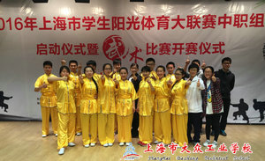为深化中职校学生综合素质评价机制,督促落实发展学校体育的职责,增强学生体能,促进中职生身心的健康发展,2016年4月24日,上海市学生阳光体育大联赛中专技校组武术比赛在上海经济管理学校隆重举行。大赛由上海市教育委员会、上海市体育局、共青团上海市委员会主办,上海市中等专业学校体育协会等单位协办。本次大赛共有16所学校参赛,我校最后以绝对优势荣获“上海市中专技校组武术比赛一等奖”,这个结果也代表着自2014年参赛以来我校武术社“三连冠”的辉煌佳绩,此次比赛既增强了学生体质,同时也做到了为校增光,很好地彰显出大众学子的不俗风采。