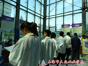 本次招聘会与往年略有不同,上午十点半特别开设了优秀学生专场,让优秀生凭自己平日实力优先获得面试权,下午普通场于一点半准时开始。学生们手持自己精心准备好的简历,在综合考虑用人单位情况及自己的意愿之后便勇敢地站到自己心仪的单位面前有序地排好了队。看,140202会计班的三位同学都选择了同一家公司,她们正耐心地排队等候着,在等待过程中有一位同学在默默浏览自己的简历,有两位同学在低头沉思,当小记者采访问她们等候的心情时,低头看简历的同学说:“感觉还是有些紧张,所以想再熟悉熟悉简历。”其他两位同学则笑着说:“也不是很紧张,就是在思考面试时会问什么问题,然后想想自己该怎么回答更好。”而在另外一边,一位140200会计班的朱同学正在进行紧张的面试,她与面试人员流利地洽谈着,整个面试过程近20分钟,面试结束后,她笑着对小记者说:“一开始还是有点紧张,但后面就好多了,感觉将自己的优点都讲到了,也比较有信心可以通过。”除了会计专业,140001文秘专业的女同学们也在积极寻找着自己心仪的单位,其中有两位女同学在一家公司面前犹豫好久却迟迟没投简历,直到小记者问她们犹豫的原因时才知原来是因为该公司地点在闸北区,她们考虑离家太远,所以最终还是决定不去。烹饪专业的张同学在面试后认真地对小记者说:“用人单位还是比较看重我们平日在学校的表现,也问了我一些关于烹饪专业的知识,还好我平日里都记得扎实,自我感觉还不错。”为了表达对所有企业的真诚欢迎,烹饪专业的同学们还特地为每一位来宾准备了一份小点心。最后,所有面试生在投完简历后都有序离场,自觉回到各班教室。