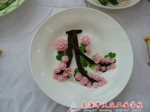 随着嘉定区领导的到来,比赛进入最重要的环节,选手们都在紧张的气氛中热火朝天地操作,有的注重摆盘,有的注重味道,有的注重火候,每份菜肴都力求色、香、味俱全。而我校的参赛选手也在不慌不忙中认真准备着自己的作品。在之前秦秋华老师的多番指导下,她顺利完成了作品,分别有碧绿鸡蛋豆腐、柠汁鱼丝、红烧划水、马蹄莲、月季花,每道菜都颇具特色。能有幸参加此次比赛,她也颇有感触,在采访中她说道:“经过这次比赛让我懂得了,美食不只是需要味,同时也需要形的配合。在雕刻和热菜中我还有许多需要学习的地方,不论比赛的结果如何,我都从这次比赛中获得了许多宝贵的经验,也开阔了我的视野,让我看到自己还有许多可以努力的空间。”