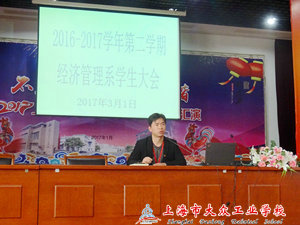 为提高学生的安全纪律意识,2017年3月1日,经济管理系领导利用下午第七节班会课的时间,召集全体同学前往多媒体召开了本学期第一次学生大会,大会由经管系副主任陈亮老师主持,会议内容围绕安全、常规工作、违纪处理三方面展开,会议重点强调了学生安全与行为规范方面的内容。整个会议过程中,同学们坐姿端正,认真聆听,会场秩序良好,取得了很好的会议效果。陈主任的一番用心谈话,必将为同学们之后的学习生活起到良好的警示与指导作用。