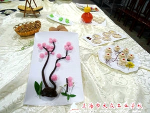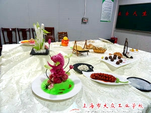 为了准备此次活动,烹饪专业的老师们也付出了自己的努力。在参观的前一天,中式面点实训的带教老师陈凤琴便开始带领学生准备作品,精雕细琢,花了不少业余的时间。而负责热菜的秦秋华与杨广老师也精心选择,细心备料,他们这种认真负责的精神值得赞扬。