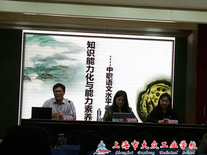 活动首先由上海商业会计学校的甘小的老师为大家做学业水平考试汇报,甘老师重点强调了语文老师应注重培养学生的知识能力素养与语文素养,包括语感与语文意识的培养。